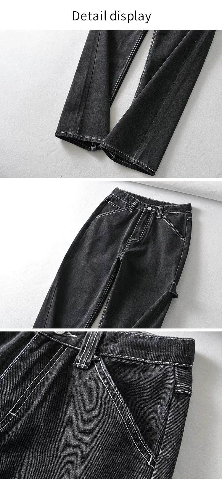 Material:70% cotton, 30% polyesterStyle: High waist, baggy, loose fit, solid, 5 pockets, white decorative stitching - also in white and blue, see model PIAShipping:Free from warehouse CH within 1-3 working days, Exchange: possible